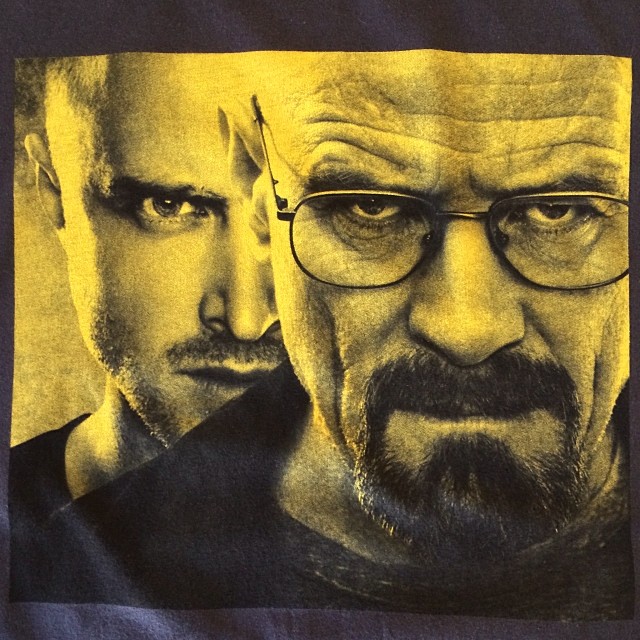 New 2 color print on a Sun Apparel Vintage Black Tee. #screenprinting #waterbase #dischargeprinting #breakingbad